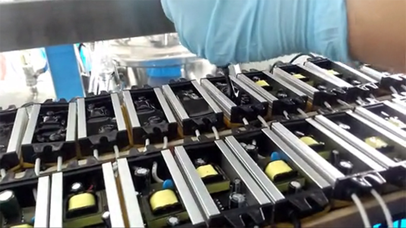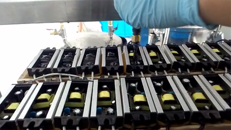 電子灌封膠有雙組份,也有單組份,本案例客戶(hù)深圳電子科技有限公司使用我司雙組份電子灌封膠進(jìn)行電源灌模密封。采用機(jī)器進(jìn)行真空環(huán)境下操作配比,將配比后的電子灌封膠經(jīng)過(guò)管道輸出就可以用于電源灌封使用。下面是客戶(hù)生產(chǎn)視頻拍攝由于手機(jī)拍攝像素問(wèn)題導(dǎo)致不清晰,請(qǐng)諒解。